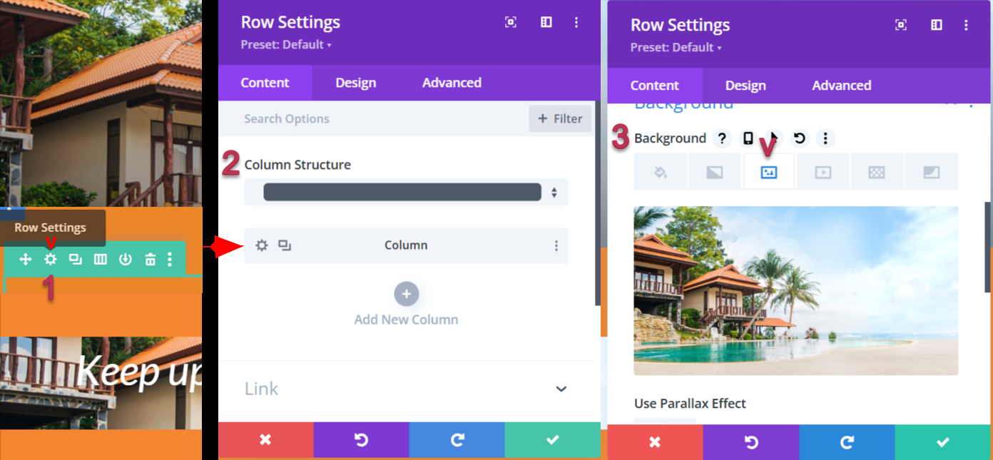 1. Select the settings icon of the green section to containing your image.