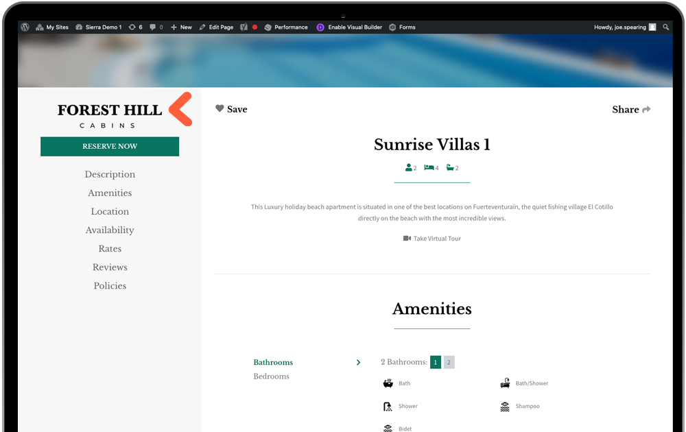With the section containing each page banner sitting directly behind the Sierra transparent header, it becomes difficult to access the section settings in the visual builder. So instead, the page banners for Sierra are connected to the featured image that is selected in the page settings: