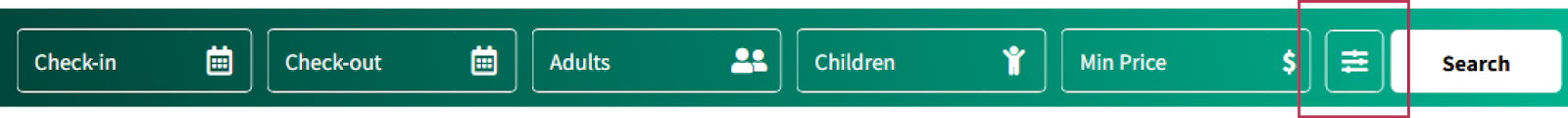 Display your property categories as a visual grid — all photos configured within your Guestwisely account. This layout provides an intuitive way for users to browse your property categories.