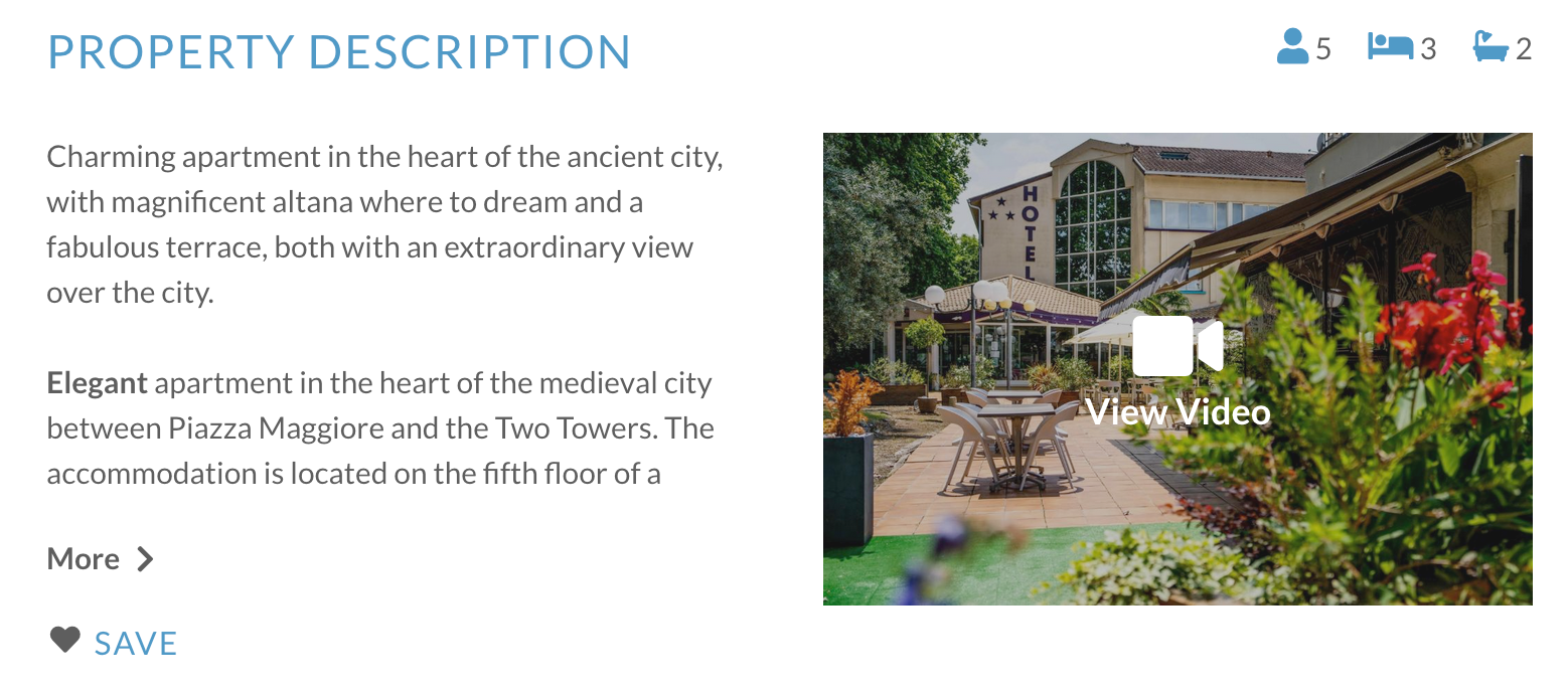 Property: Display specific property features (description, amenities, gallery, etc.).