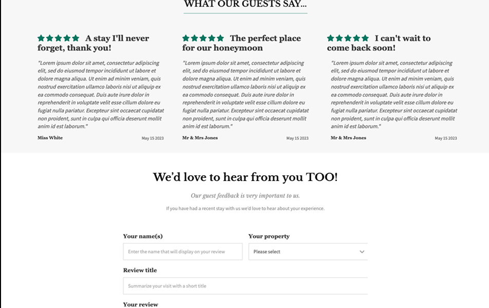 The Featured Properties short code allows you to display a row or grid of properties that you have marked as featured in your GuestWisely account. This is typically placed on your homepage to highlight selected properties and attract more bookings.
