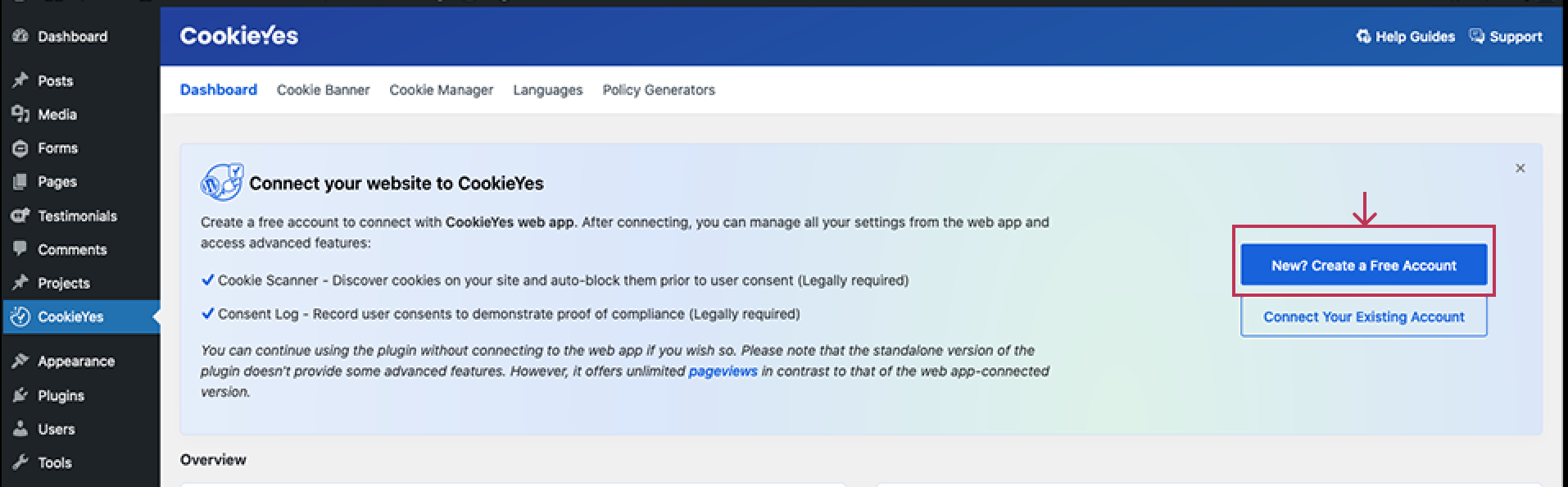 For your policies, If you opt to not use the above, the cookie plugin installed on the theme (CookieYes) can do this for you if you create an account from the CookieYes dashboard from the main Wordpress menu.