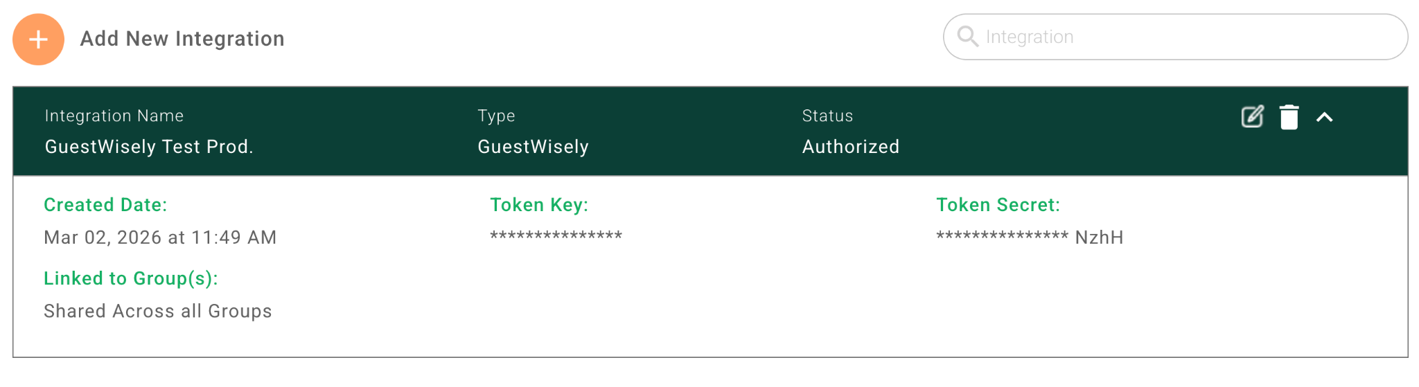 - Next, select your Integration name provided at step “2. Connect Lynx and GuestWisely”.