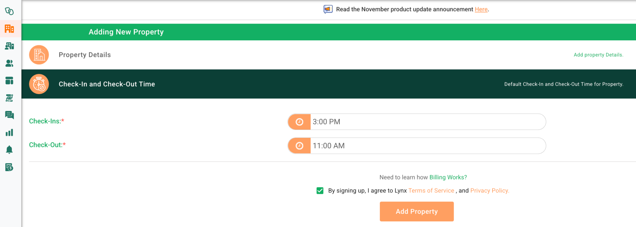 Confirm check-in /out and click on “Add Property”.