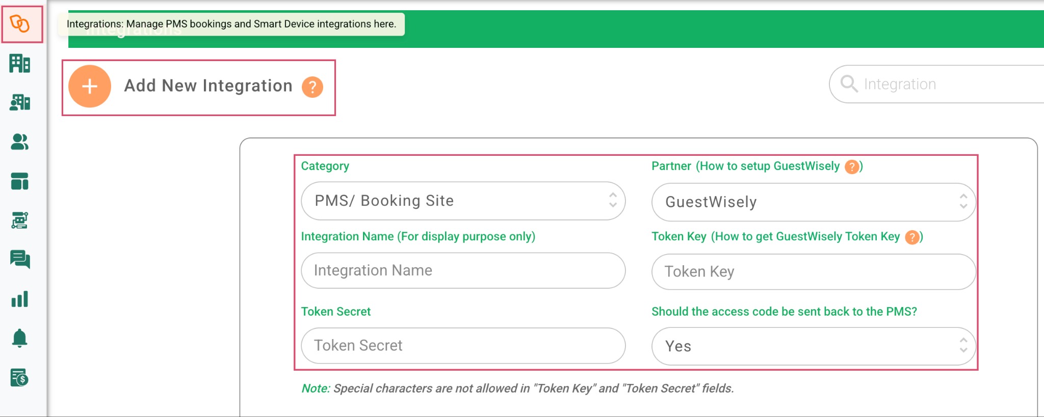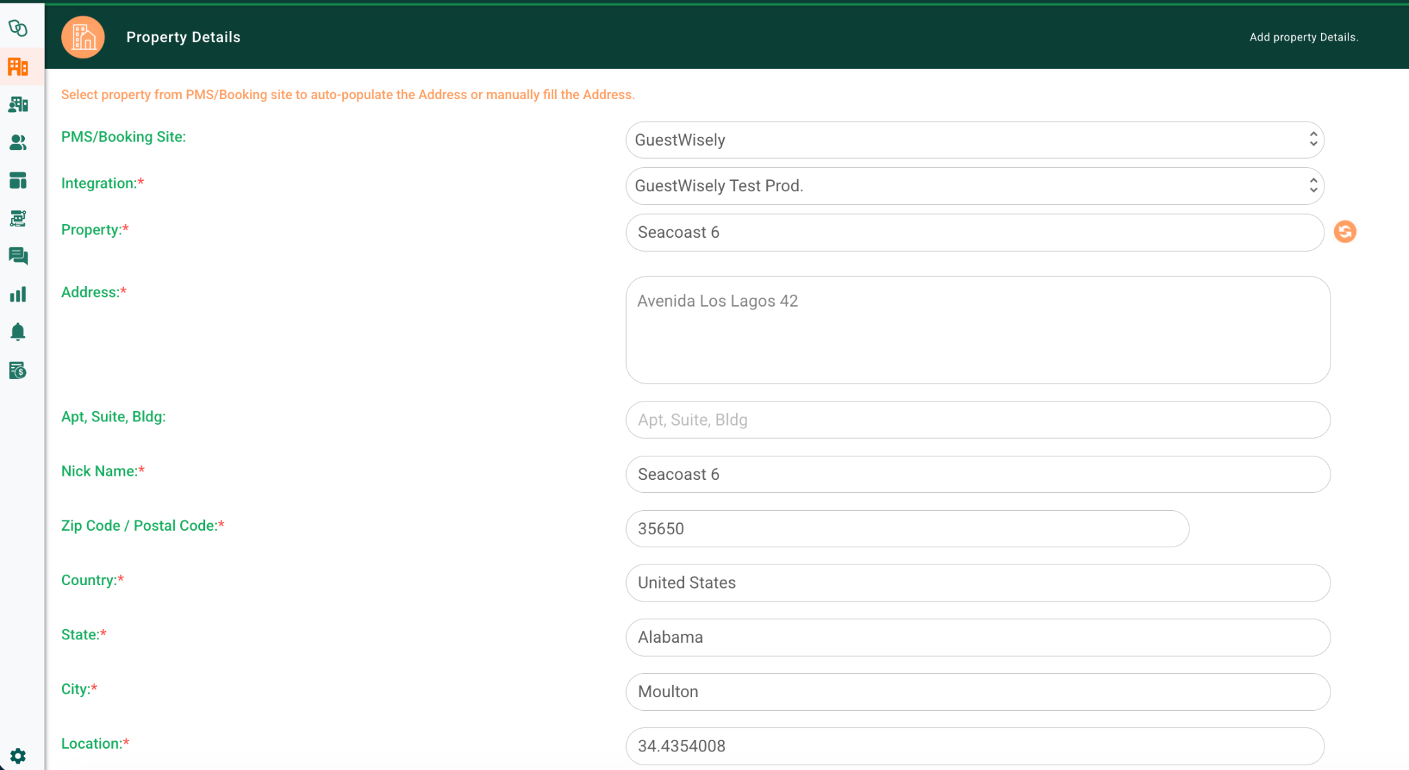 - Click on +Add Property > Property Details > PMS/Booking Site > GuestWisely.