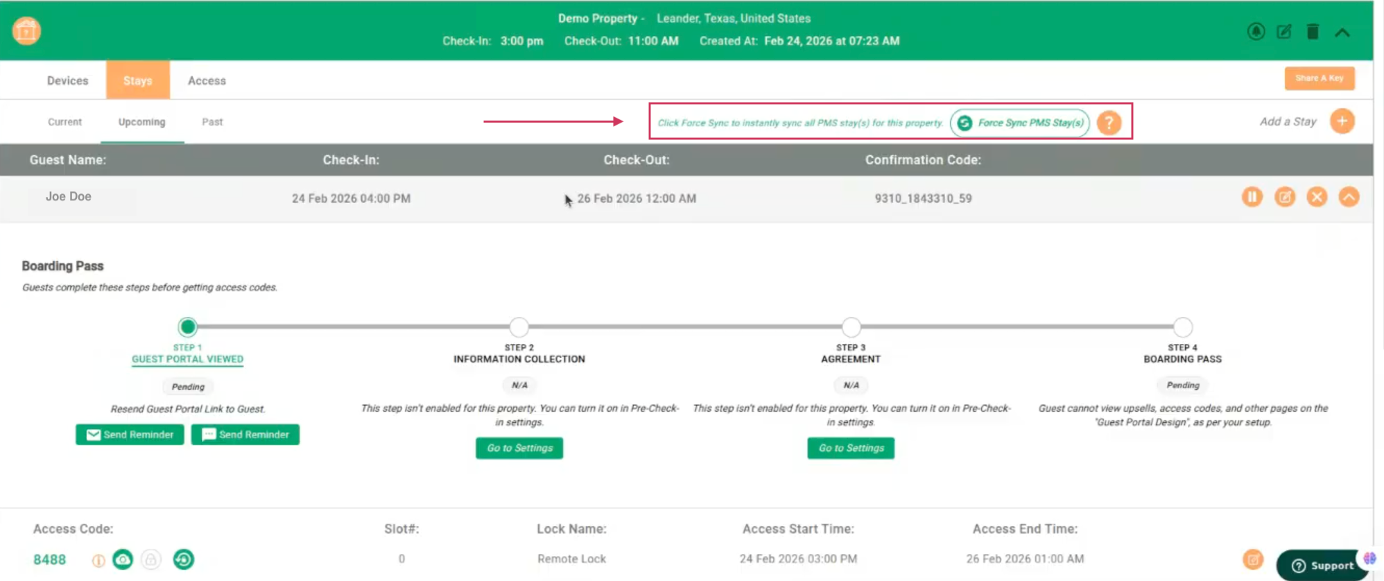 Manual Force Sync: Use the Lynx "Force Sync" button in the property or integration settings for immediate updates. ONLY for last-minute check-ins.
