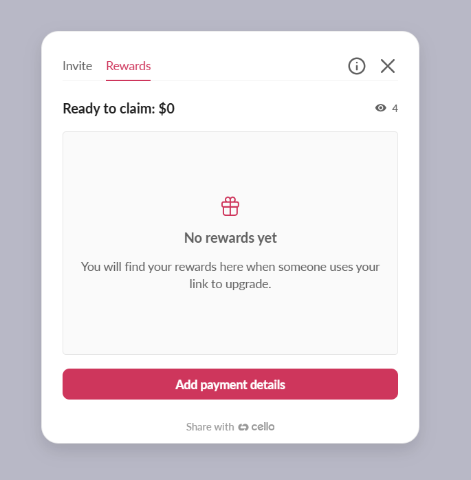 The referral widget allows you to copy your personal referral link and track referral activity.