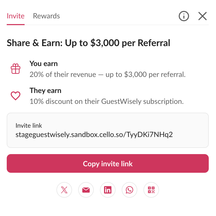GuestWisely uses Cello’s embedded referral component to securely track referrals and manage reward validation automatically.