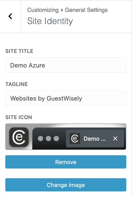 3. Uploading your favicon under Site Icon – the icon that sits inside browser tabs. Favicons should be square and at least 512 × 512 pixels.