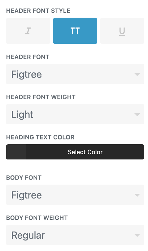 Tips: To keep brand consistency, use either the heading or paragraph font you selected in Typography settings above. The default selection is paragraph font.