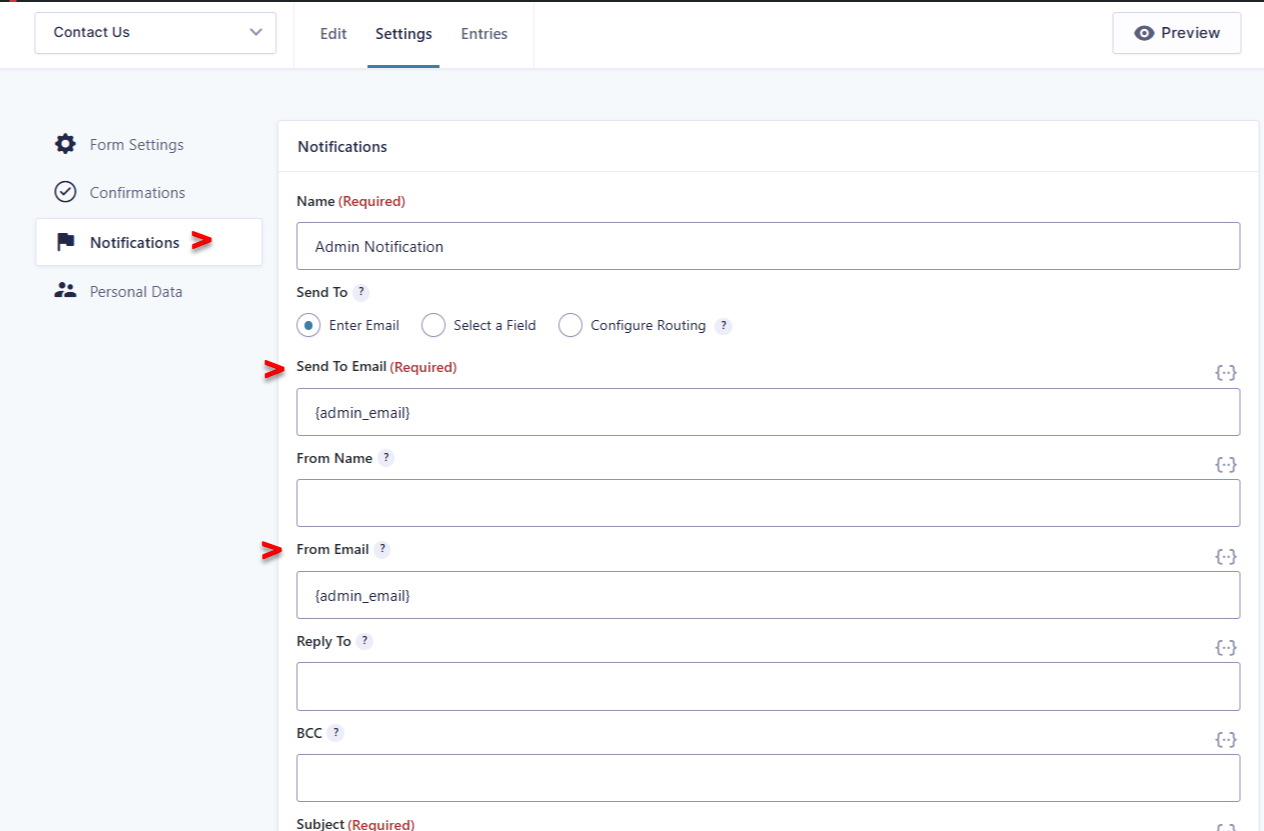 By default the admin notification is set to send to and from: {admin_email} which is info@guestwisely.io. Emails sent to this email address, from your website, will automatically be routed to the mailbox within your GuestWisely account. So they will be visible for you to manage from there.