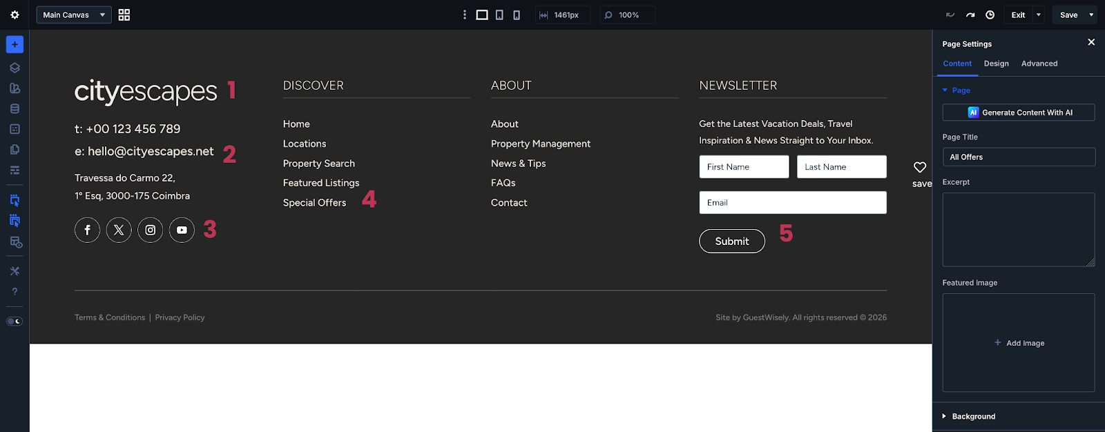 Enter the footer via the Edit icon where you will make a few small edits to your company information.