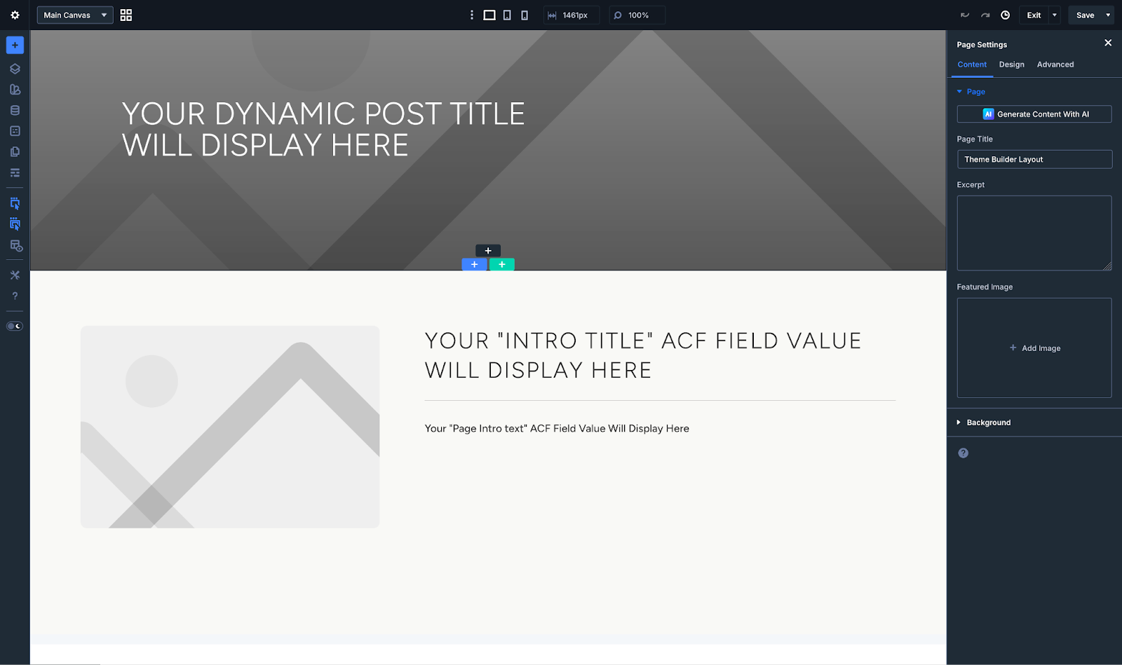 If you enter these custom bodies you will see there is no content, just fields that will link dynamically to the data created in your WordPress CMS. More information is provided in a later article on Custom Post Types.