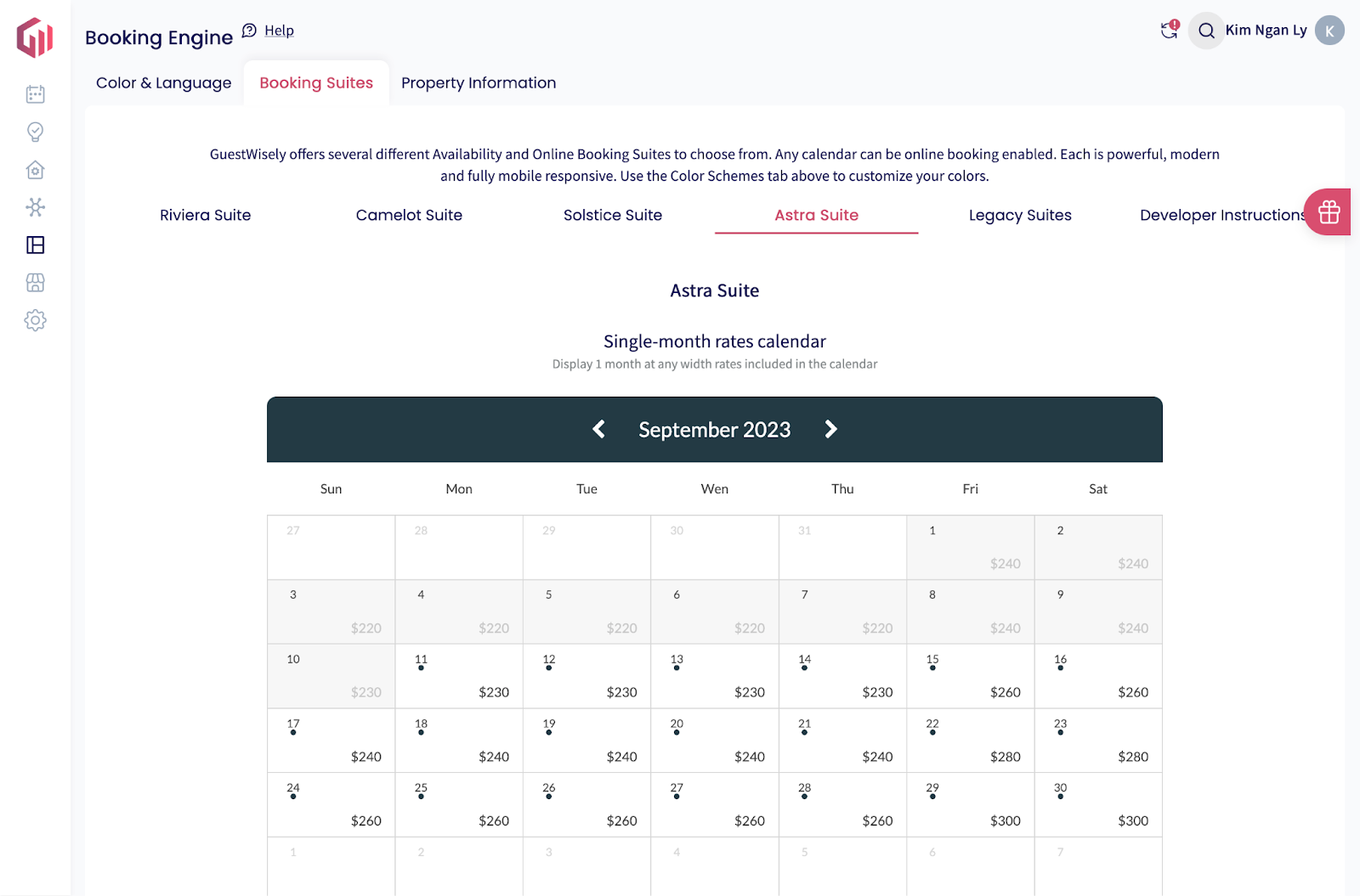 5. Booking Engine: Calendar colors, calendar suite, search criteria.