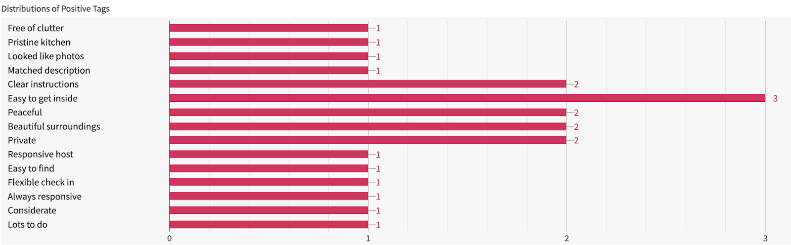 Airbnb assigns tags or sentiment categories to each review. These tags break down feedback into specific areas such as cleaning, communication, check-in processes, and accuracy of the listing.
