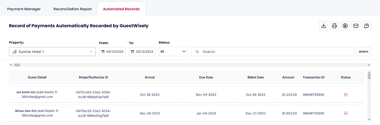 Informe de Reconciliación: simplifica la reconciliación mensual al cruzar sin esfuerzo los registros de GuestWisely con tus movimientos bancarios.