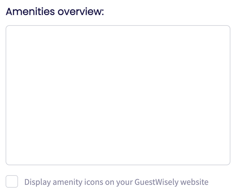 Proporciona descripciones detalladas de las amenidades de la propiedad para informar y atraer huéspedes, y elige si deseas mostrar iconos de amenidades en tu página web.