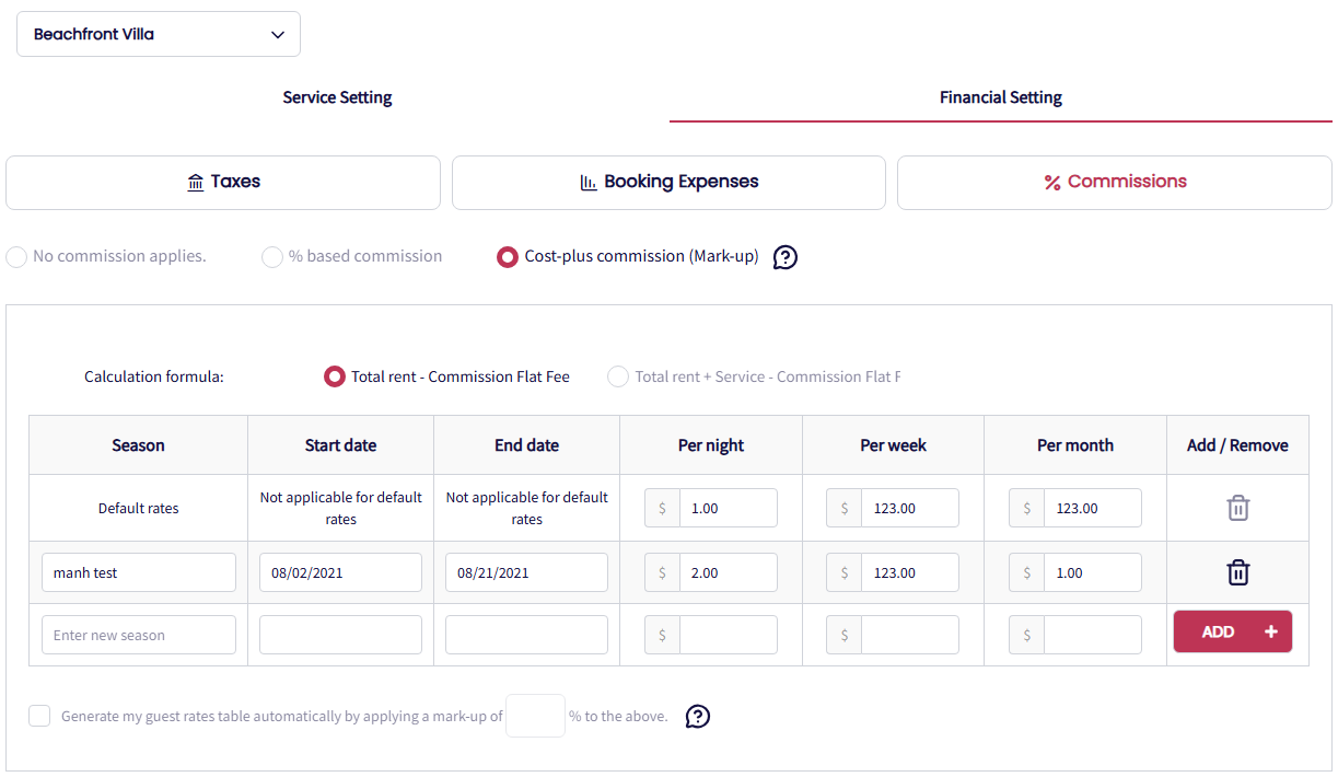 3. Comisión “Cost-plus” (Mark-up): Permite incrementar tarifas para obtener un margen de beneficio adicional respecto al propietario.