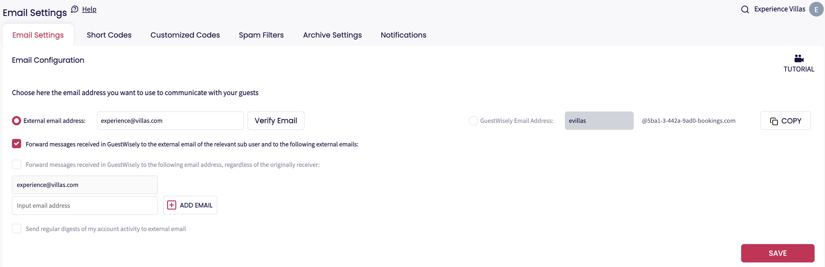 Ya sea que utilice una dirección de correo electrónico proporcionada por GuestWisely o la suya propia, usted tiene control total sobre cómo se entregan los mensajes y cómo se gestionan las respuestas. Una vez que elija su opción de correo preferida, puede configurar el reenvío de correos y el enrutamiento de respuestas, garantizando que sus comunicaciones se reciban y administren según sus preferencias.