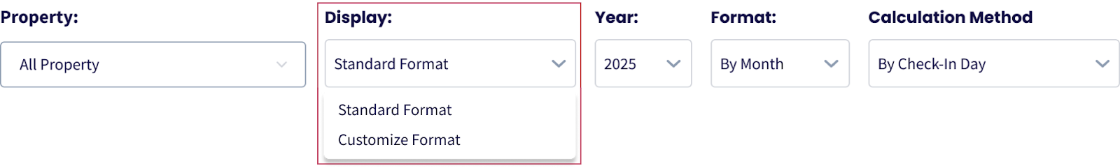 Propiedad: Todas las propiedades están seleccionadas por defecto, pero puedes generar informes de una propiedad específica o un grupo de propiedades.
