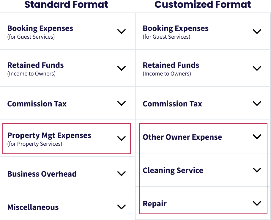 La diferencia principal entre los dos formatos es cómo se muestran los Gastos de Gestión de Propiedades: