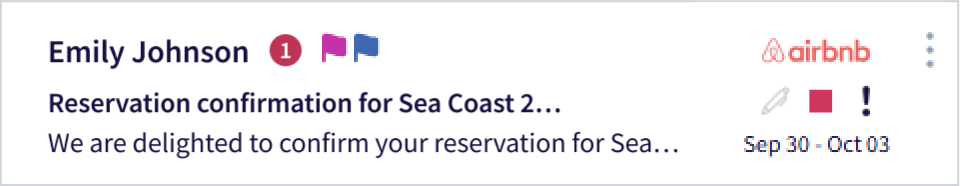 Widget: al hacer clic en el menú de tres puntos puedes gestionar etiquetas, gestionar la reserva o marcar el mensaje como no leído.