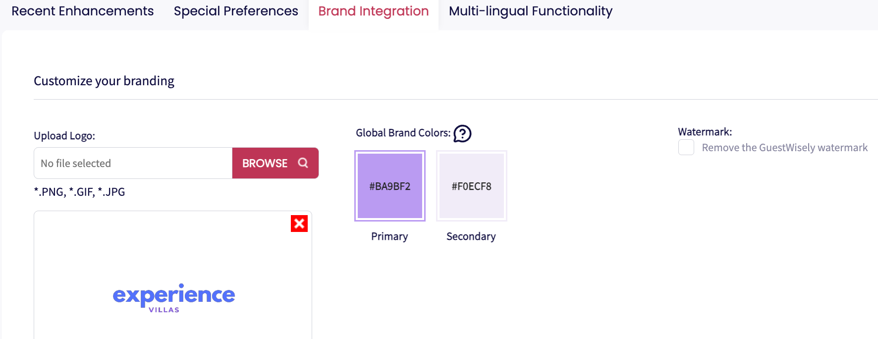 Los contratos de alquiler incluyen tu logotipo de forma predeterminada, aplicado automáticamente. Puedes personalizarlo desde el apartado de Configuración de la Cuenta > Preferencias Especiales > Integración de Marca. En la misma sección también puedes ajustar el esquema de colores para asegurarte de que coincida con la identidad de tu marca.