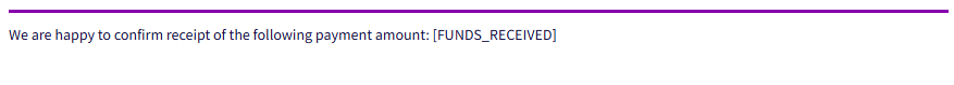 Accede desde el apartado de Soluciones > Documentos > Facturas > Recibos y haz clic en los títulos de información. Puedes usar el campo de texto libre para mejorar el recibo e insertar códigos dinámicos como por ejemplo [FUNDS_RECEIVED] para mostrar dinámicamente los datos relevantes de la reserva
