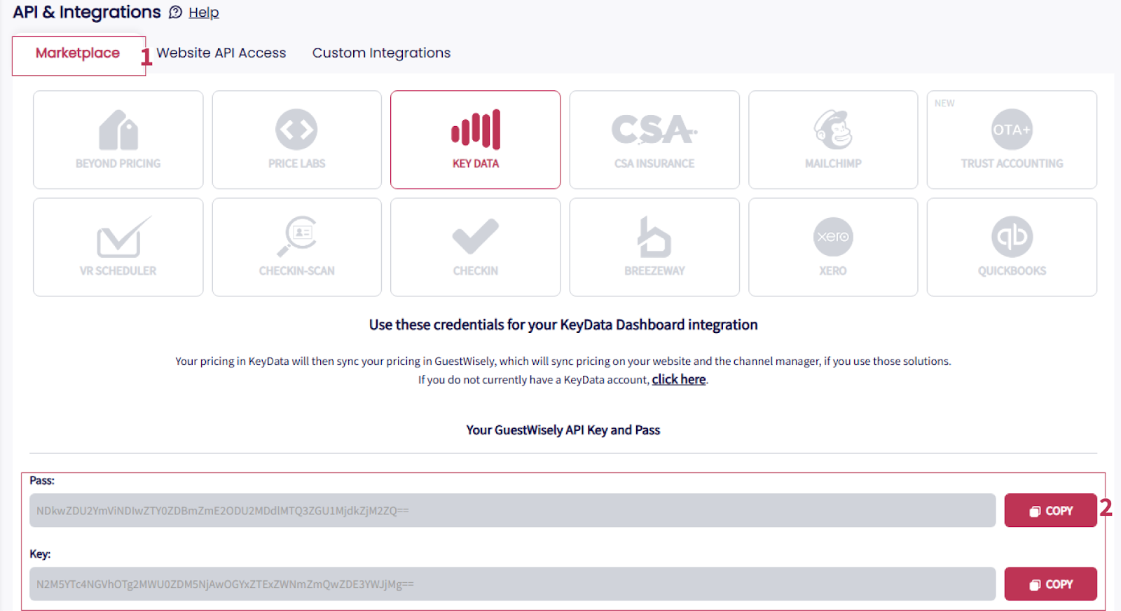 1. Inicia sesión en GuestWisely y dirígete al apartado de  Marketplace > Key Data.