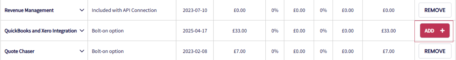 • Localiza el Complemento de Integración QuickBooks y Xero y haz clic en Agregar+.