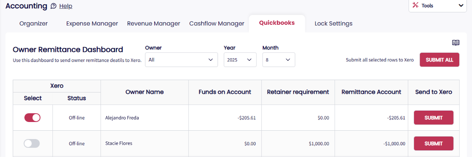 • Visualizar todas las remesas de propietarios en un solo lugar centralizado.
